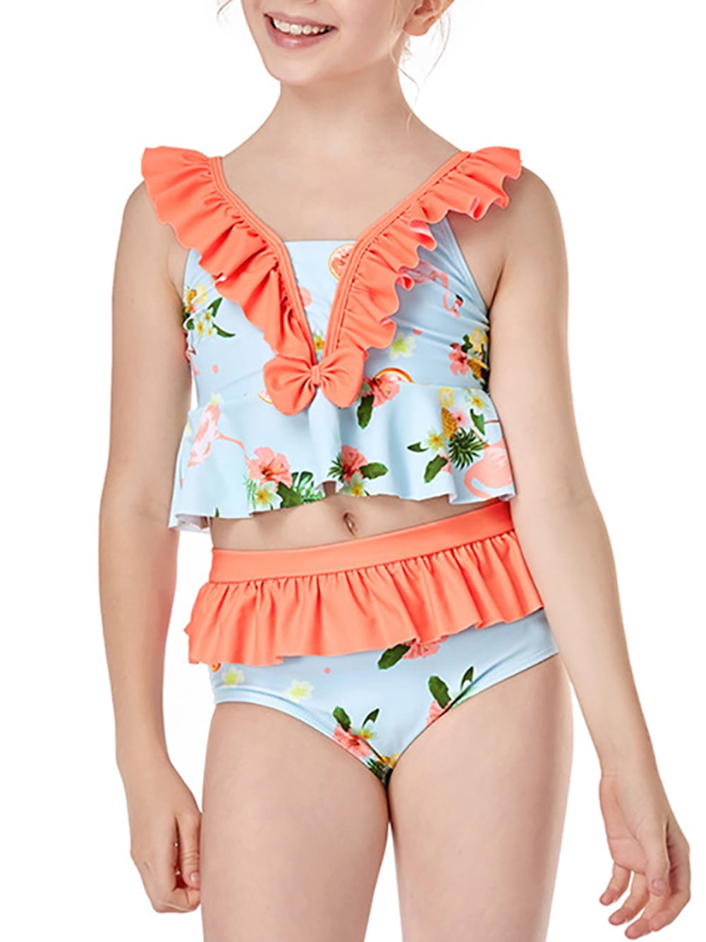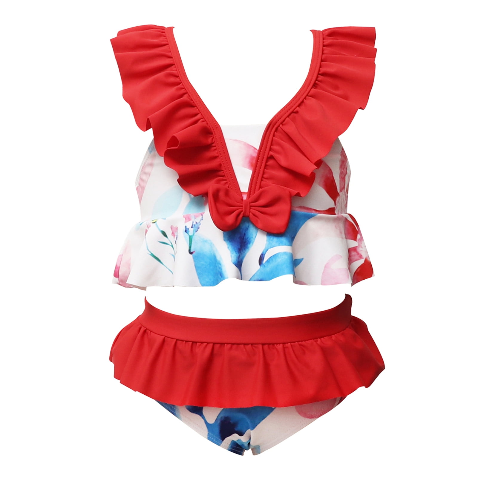 Fesfesfes Children S Bikini Sets Kids Girls Ruffles Patchwork Floral Print Two Piece Swimsuits Bathing Suits Beach Swimwear 10 12 Walmart Com