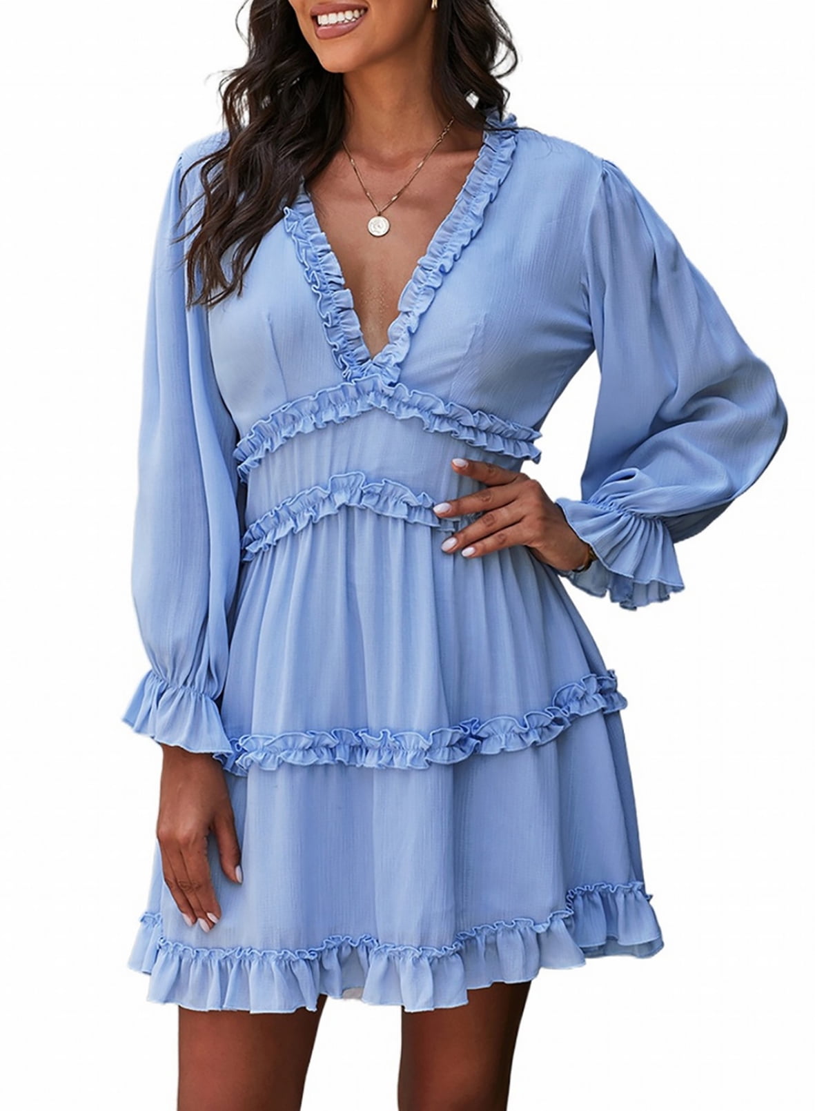 Dokotoo Women S Sky Blue Fashion V Neck High Waist A Line Ruffle Hem Mini Dress Size Large Us 12 14 Walmart Com